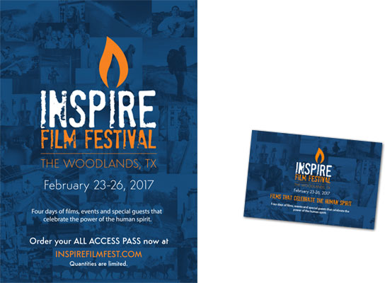 We quickly started producing the materials needed to help Jane sell the film festival. Being a full service marketing agency, we were able to quickly take simple work documents and transform them into a folder and inserts that complemented the Inspire brand, as well as provide business cards and letterhead that shared the look and feel.